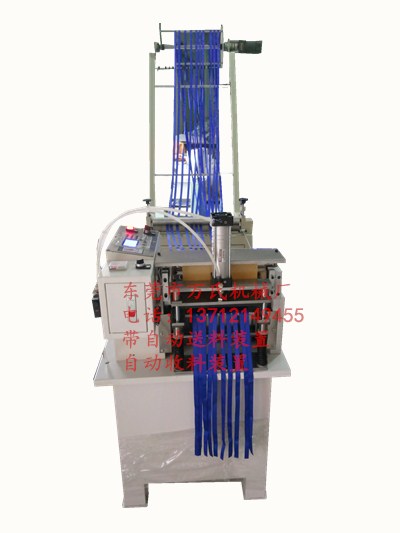 柜式切帶機特點:a采用高性能微電腦中文控制系統,高靈敏度觸摸式操作面板,液晶顯示屏,機型設計符合人體工學原理,操作簡便、耐用。b動力采用高扭力步進電機送料,精度高。切帶長度、數量、速度可自由設定。c切刀可附加熱裝置,能將編織帶切口加熱固結,不產生毛邊,精度高,損耗少。d 有反復切斷功能。e獨特的糾錯報警功能,確保操作準確無誤。