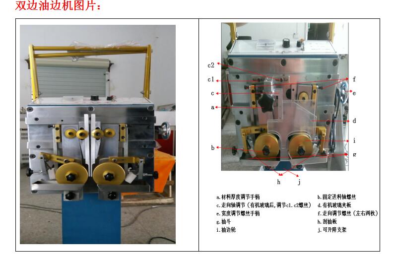 再油帶身,這樣皮帶就不會邊上的油滾至邊沿,導致重新油邊?焐仙俣,從而提高了生產率。此款皮帶雙邊油邊機:速度連續,無級調速,操作高度